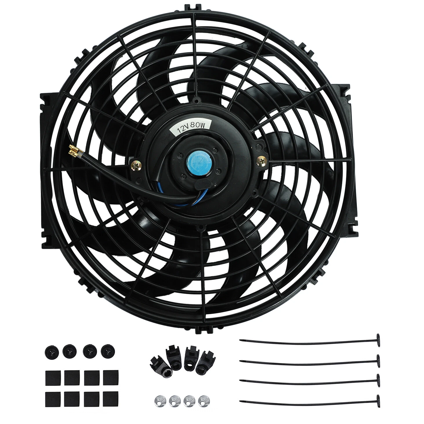 We recommend 14 inch cooling fan be used for Radiator Side and 12 Fan be used for AC cooling side systems. We don't offer bolt in fan shrouds like other competitors due to the lack in size. They typically offer 12 inch and 12 inch. For example the S2000 Radiator requires at minimum 14 inch fan for the Radiator side. On the S2000 AC side we would also use 14 inch, however due to size constraints 12 inch is the largest we can fit.
